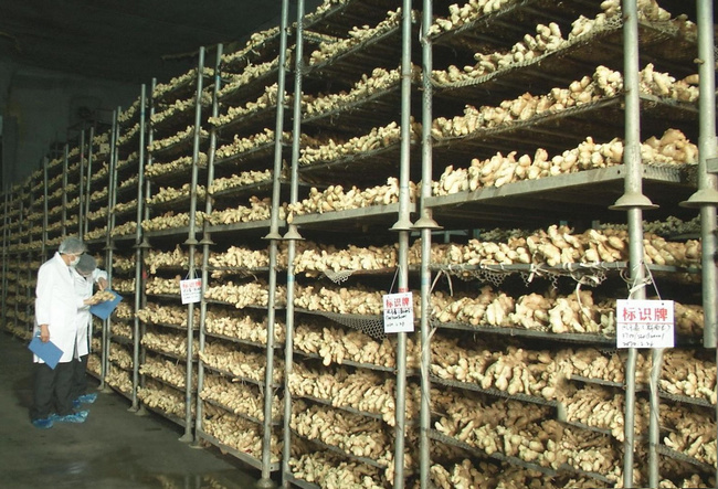 3. 生姜冷藏溫度:;生姜“圓頭”后應在13℃-14℃的貯藏溫度下保存。冬季,倉庫不冷藏時,倉庫溫度可能低于10℃,倉庫內必須采取升溫措施。